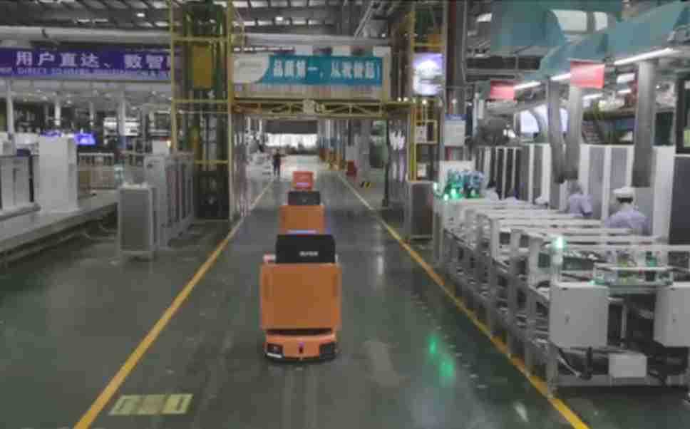 为车载冰箱物流配送打造的智能解决方案,,,包含产中物流通过潜伏举升AMR搬运至线边,,产后成品物流智能仓储,,流程包含产中物流智能齐套入库,,,线边安灯叫料AMR智能配送至线边,,,成品入库、、出库,,,通过无人堆高车机器人,,智能仓储管理替代人工作业管理,,,,实现更高存储、、更高效率、、、、更具柔性化的解决方案。。