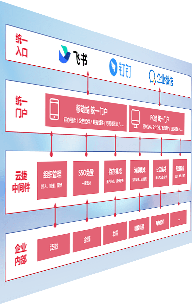 对协作平台提供支持服务,,,支持企业应用与协作平台对接,,包含组织同步、、消息集成、、、、待办集成等。。支持目前主流的协作平台:钉钉、、、企微和飞书。。。